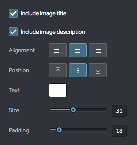 8. Check off Include image title and description to enable a title and/or description on your image(s), otherwise only effects without content will appear. You will also see options to position/align/style the text here.