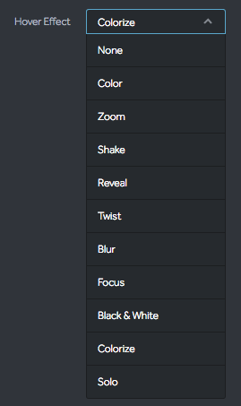 10. Next to Hover Effect you will see a drop down with 10 different Hover Effects to choose from: