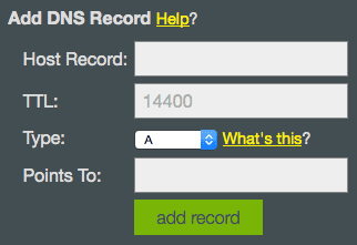 5. Scroll down to the heading titled Add DNS Record and enter these details into a new A Record: