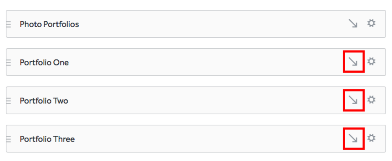 - 6. Once you have successfully finished all of the above steps, you can begin adding portfolios that will showcase your work. In order to organize the portfolios to display in the drop-down menu you have just created, you will need to indent your portfolio pages.